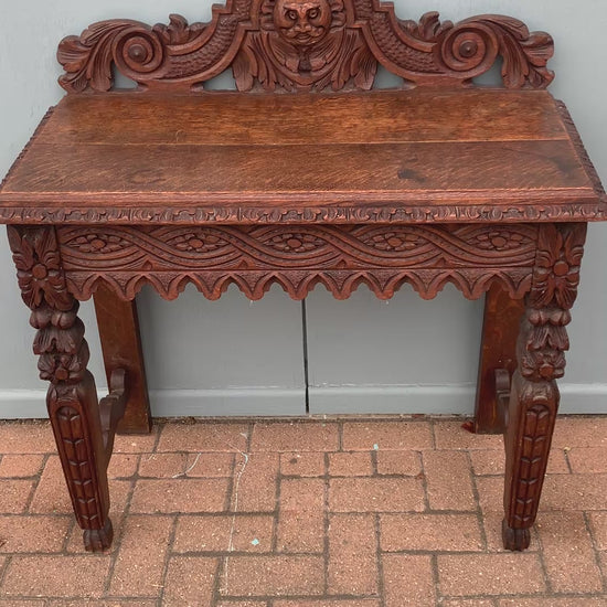 Victorian Carved Oak Console/Hall Table with Green Man Motif.