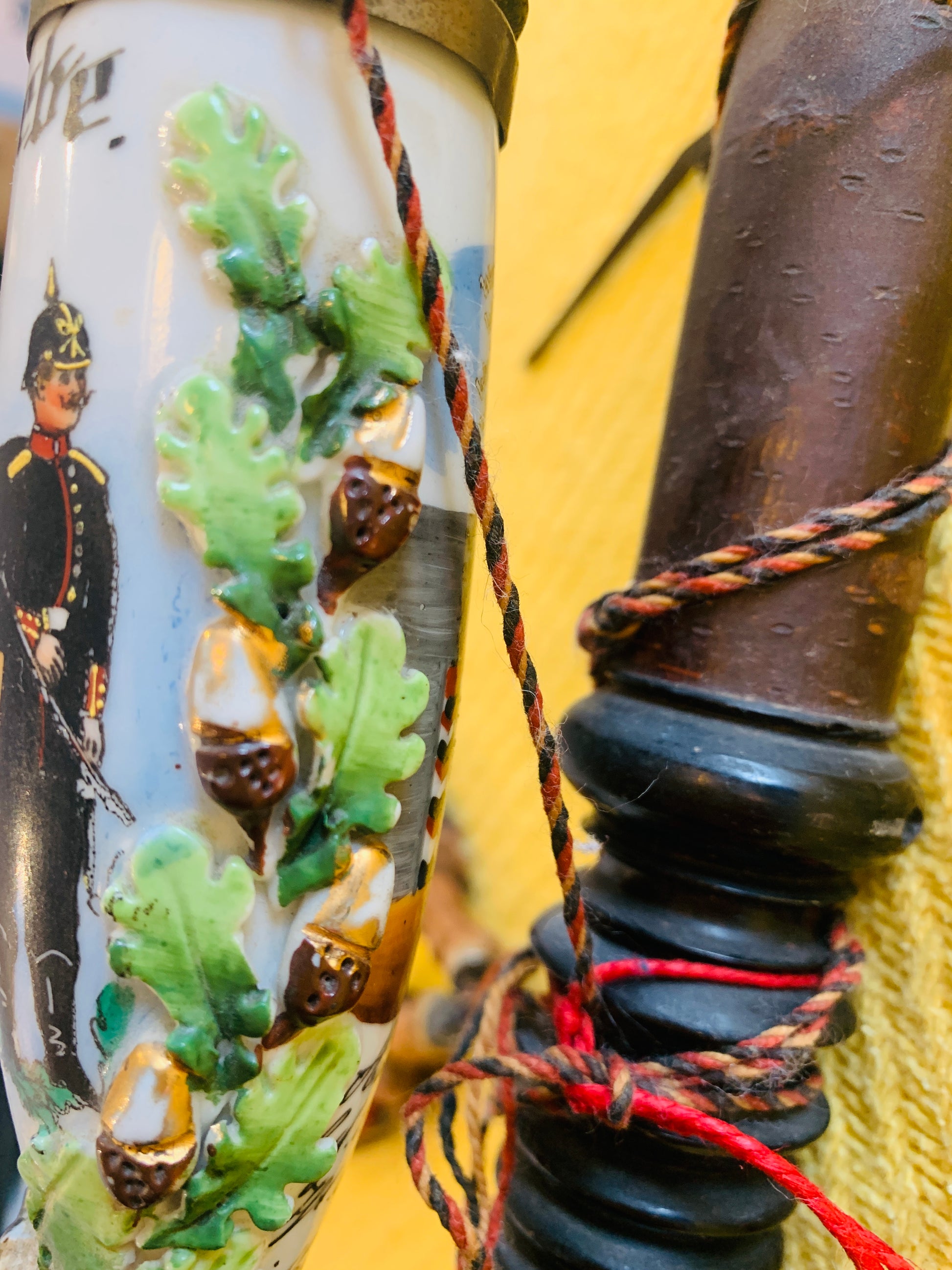 Antique German RESERVIST PIPE WITH PORCELAIN PIPE BOWL - 'RESERVISTENPFEIFE MIT PORZELLAN-PFEIFENKOPF' (1906-1908)