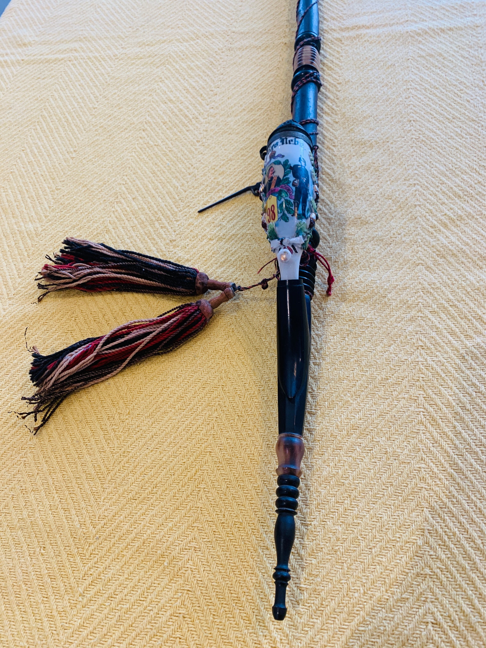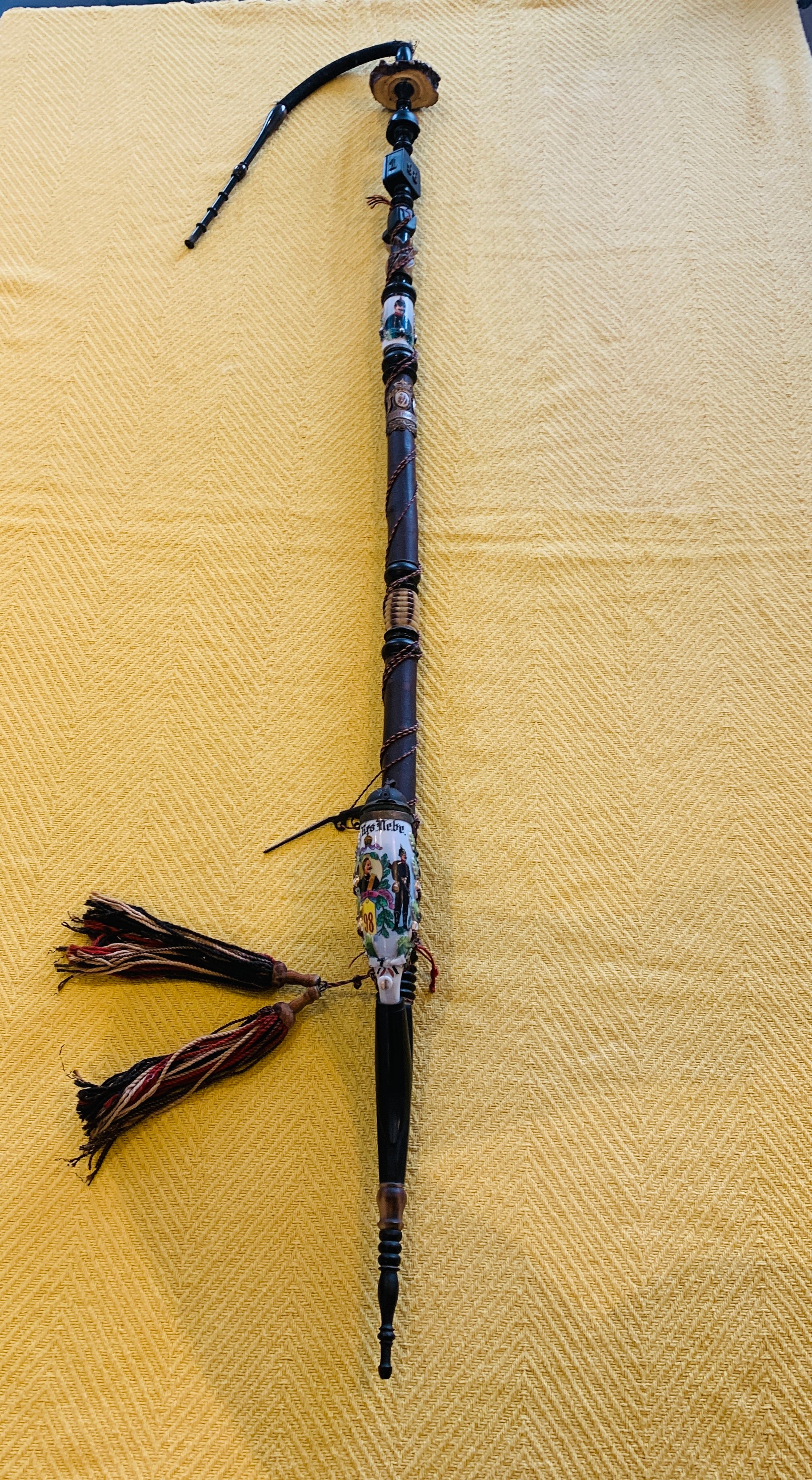 These pipes were popular during the late 19th and early 20th centuries in the German Empire. Soldiers would commission or purchase them after their compulsory military service as a commemorative souvenir. They served as a form of personal pride, a tangible symbol of their completed duty and status as a trained reservist, ready to be called up in a time of war. The porcelain sections are often richly decorated with military scenes, regimental symbols, and personalized information. The eagle on the stick is the Imperial German eagle (Reichsadler), a symbol of the German Empire.