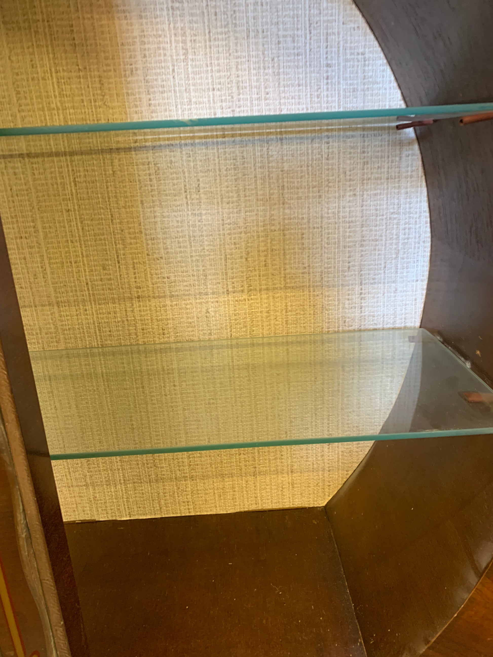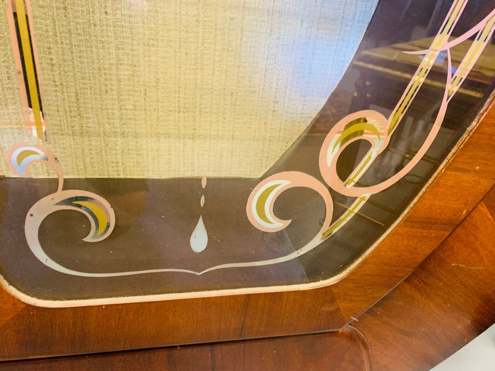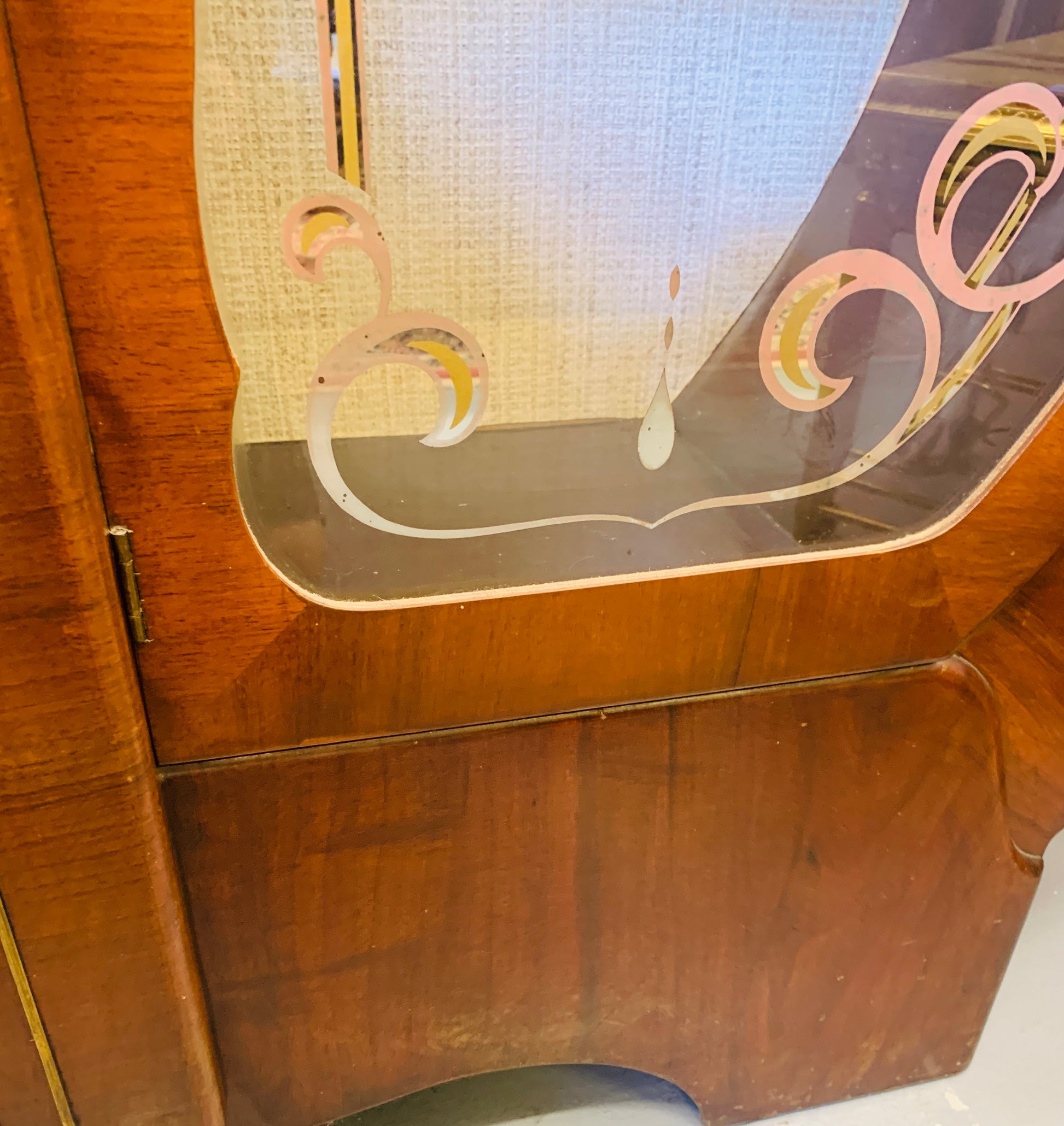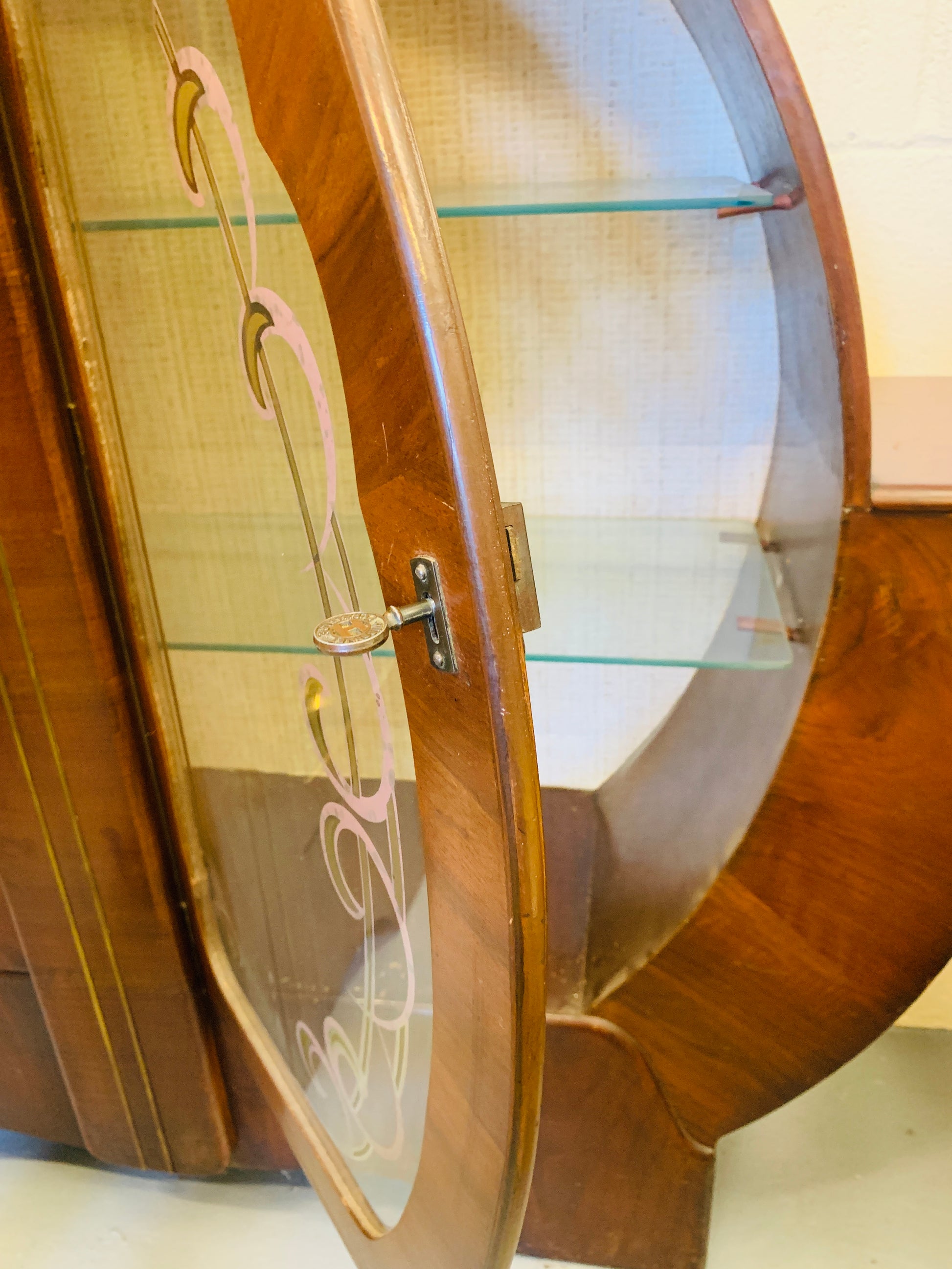 1930s Art Deco Cocktail Cabinet Curved Walnut Bar with Etched Glass