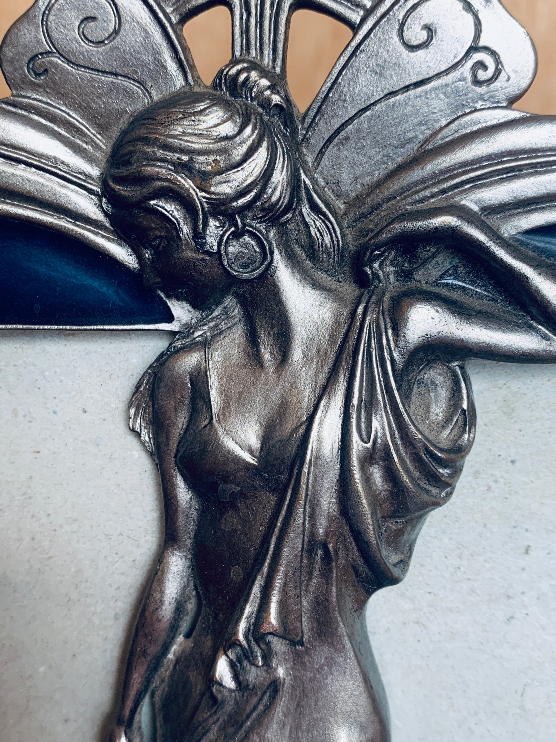 Vintage Art Nouveau Style Enamel Photo Frame with Figural Lady